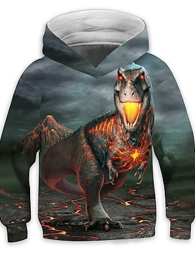 Gutt 3D Grafisk Tegneserie Dinosaur Hattetrøje Langermet Vår Høst Mote Gatemote Barn 4-12 år Med hette utendørs Avslappet Daglig Normal