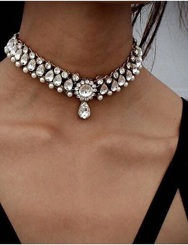 Utsagns Halskjede Krystall Rhinstein Legering Kvinnenes Luksus Basic Viktoriansk Halskjede Fest Bryllup Jubileum Uformell Daglig Forlovelse Valentinsdag å imponere