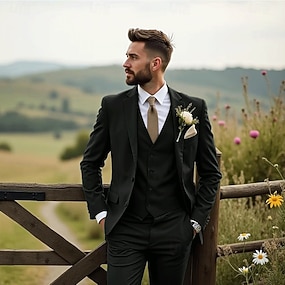Herre Blazer + Vest + Kjolebukser Blazer Virksomhet Arbeid Bryllup Mote Gatemote Høst Vinter Terylene عادي 3 deler Enkeltkneppet Blazer Svart Champagne Rosa Kakifarget