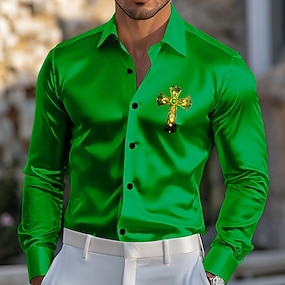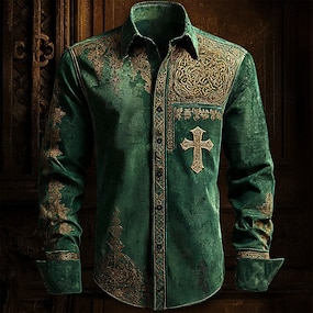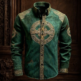 St. Patricks dag Menns Keltisk Kors Keltisk Knute Skjorte Knapp Opp Skjorte Lang Erm Vintage Retro Festferie Vår Høst Turndown 3D Print Linne Lignende Skjorte Grønn 1 Grønn