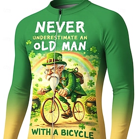 Menn St Patrick Jersey Sykling Jersey Downhill Jersey Ombre Karakter Firkløver Lange ermer Sykkel Tee T-skjorte Jersey Kompresjonsklær med 3 Baklommer UV Solbeskyttelse Med lommer Høy