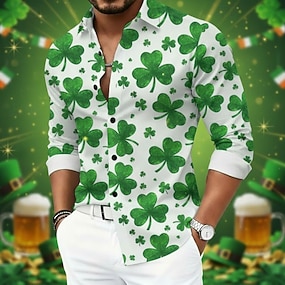 St. Patricks dag Menns Firebladskløver Shamrock Keltisk Kunst Skjorte Knapp Opp Skjorte Langermet Vintage Retro Høytid Vår Høst Turndown 3D Print Linnenlignende Skjorte Grønn 1 Grønn