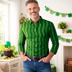 St. Patrick 2026 Retro / vintage 1970erne قميص Aloha skjorte Lange Ermer Hippie Kostyme Herre Maskerade 4. juli Fest Festival Voksne Trøye