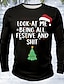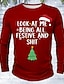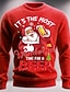 Jul Herre julenissen Morsom T skjorte Langermet T skjorte 3D-utskrift Crew-hals Skjorte Mote Grunnleggende 3D Gate Avslappet Daglig Svart Rød Blå Sommer Vår Klær S M L XL XXL XXXL