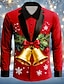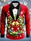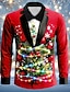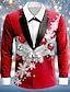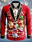 Jul Herre Julekostyme Julelys Smokingskjorte med slips og trykk Skjorte Skjorte med knapper Langermet Morsom utendørs Ferie Vår Høst Aftæpning 3D-utskrift krage skjorter Rød 1 Rød 4 Rød 3 Rød Rød 2
