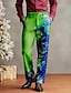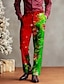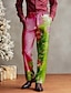 Jul Herre Juletre Farge-blokkering Bukser Dressbukser Medium Midje Fritid utendørs Ferie Rette benbukser med lommer Høst Vinter 3D-utskrift Rosa Rød Grønn
