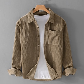 Herre Skjorte Uformell skjorte Kordfløyel skjorte Skjorte med knapper Overskjorte Blå Grønn Kakifarget Langermet Aftæpning Avslappet utendørs Lomme Klær Årgang Fritid