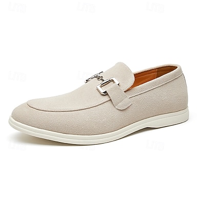 Beige slip-on loafers til menn, stilig design med polstret såle, komfortabel formell stil for hagebryllup, fester og spesielle anledninger