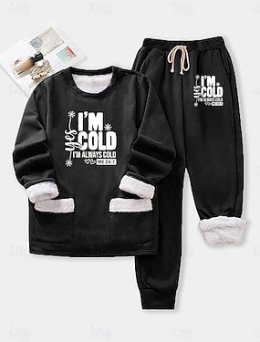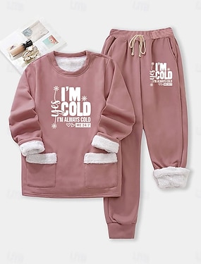 Dame Fleeceforet genser-pysjamas Genser med genser Pullover Gensere Trykt mønster Bokstaver Varm Gatemote Fritid Langermet Crew-hals Vanlige topper Avslappet Hjem Hverdag Blå Svart Rosa Mørk Rosa Grå