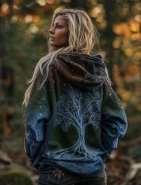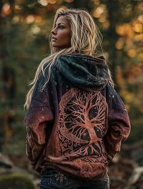 Dame Hettegensere med glidelås Grafisk Geometrisk Stamme Punk Aktiv Årgang Langermet Med hette Vanlige topper Avslappet Hjem Hverdag Blå Lilla Brun Grønn Høst Vinter