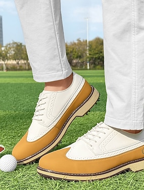 brune og hvite golfsko for menn – førsteklasses snøredesign i kunstskinn med sporty stil for golf og utendørsaktiviteter