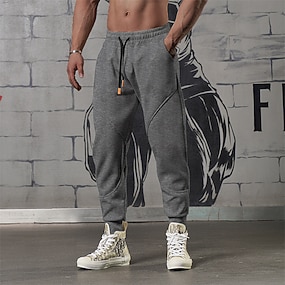 Herre Grafisk Joggebukser Joggere Medium Midje Fritid utendørs 3D-utskrift Høst vinter Svart