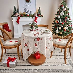 Amerikansk Stil Juleduk Rød Brodert Høytidsduk Hjemme- og Kommersiell Bruk Festlig Støvdempende Spisebord Dekorasjon Sesongmessig Bakgrunnsduk