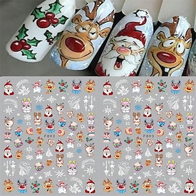 negleklistremerker til jul, søte tegneseriesnøfnugg, reinsdyr, nissen og negleklistremerker for juletre, manikyrdekorasjoner i festlig feriestemning
