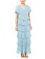 Linjeform Ankellengde Festkjole Cocktail Kjole Gjestekjole til bryllup Kjole til brudens mor Kortermet V-hals Plusstørrelse Bryllupsfest Chiffon med Niveauer
