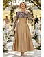 Todelt Linjeform Te-lengde Gjestekjole til bryllup Kjole til brudens mor 3/4 ermer Crew-hals Elegant Årgang Enkel Formell Bryllupsgjest Blonder med Broderi