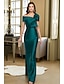 Linjeform Gulvlengde Sateng kjole Festkjole Cocktail Kjole Kjole til brudens mor Kortermet Enskuldret Elegant Formell Bryllupsgjest Bryllupsfest Sateng med Sløyfe(r)