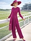 Buksedrakt 3 -delt drakt Gulvlengde Kjole til brudens mor Langermet Halsbåt Elegant Plusstørrelse Innpakking inkludert Formell Bryllupsgjest Chiffon Innpakking inkludert med Perlearbeid