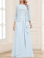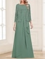 A-linje Ankellengde Festkjole Cocktail Kjole Gjestekjole til bryllup Kjole til brudens mor 3/4 ermer Besmykket Elegant Plusstørrelse Bryllupsgjest Bryllupsfest Chiffon Blonder med Bølgemønster