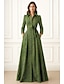 A-linje Linjeform Gulvlengde Perlebrodert Gjestekjole til bryllup Formell kjole Kjole til brudens mor 3/4 ermer V-hals Skjortekrage Elegant Årgang Luksuriøs Formell Sateng med Appliqué Blomst