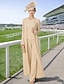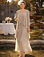 Todelt Linjeform Knelengde Gjestekjole til bryllup Kjole til brudens mor Stropper Besmykket Elegant Bryllupsgjest Bryllupsfest Kirke Sateng Jakke kjoler med Belte / bånd Sløyfe(r) Perlearbeid