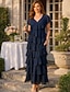 Linjeform Ankellengde Gjestekjole til bryllup Formell kjole Løstsittende kjole Kjole til brudens mor Ermeløs V-hals Elegant Enkel Bryllupsgjest Semi-formelt Chiffon med Niveauer Ensfarget