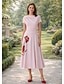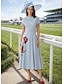 A-linje Te-lengde Cocktail Kjole Gjestekjole til bryllup Kjole til brudens mor Kortermet V-hals Båthals Elegant Enkel Fritid Formell Kentucky Derby Semi-formelt Stretch Crepe med Plissert Tryk