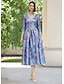 A-linje Gulvlengde Skjortekjole Gjestekjole til bryllup Formell kjole Kjole til brudens mor 3/4 ermer Skjortekrage Elegant Høy splittelse Bryllup Formell Sateng med Blomstertrykk Sløyfe(r) Spalte