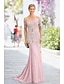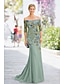 Havfrue Gulvlengde Gjestekjole til bryllup Formell kjole Aftenkjole Kjole til brudens mor Langermet Løse skuldre Elegant Formell Bryllupsgjest Blonder Elastisk chiffon med Blonder Ruchiing