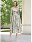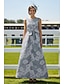 A-linje Ankellengde Gjestekjole til bryllup Derbykjole Kjole til brudens mor Ermeløs Båthals Elegant Årgang Formell Kentucky Derby Sateng med Sløyfe(r) Tryk
