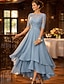 A-linje Te-lengde Festkjole Cocktail Kjole Gjestekjole til bryllup Kjole til brudens mor 3/4 ermer Crew-hals Elegant Bryllupsgjest Forlovelsesfest Chiffon Blonder med Blonder Plissert