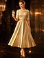 A-linje Te-lengde Festkjole Cocktail Kjole Gjestekjole til bryllup Kjole til brudens mor Halvlange ermer Øsehals Elegant Årgang Bryllupsgjest Sateng Blonder med Bølgemønster Appliqué
