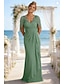 A-linje Havfrue Linjeform Gulvlengde Gjestekjole til bryllup Formell kjole Aftenkjole Kjole til brudens mor 3/4 ermer Halvlange ermer V-hals Besmykket Elegant Årgang Fest Formell Bryllupsgjest