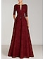 A-linje Gulvlengde Gjestekjole til bryllup Formell kjole Kjole med vidt skjørt Kjole til brudens mor Halvlange ermer V-hals Elegant Årgang Bryllup Formell med Sløyfe(r) Med stropper