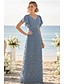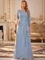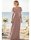 Linjeform Gulvlengde Festkjole Cocktail Kjole Gjestekjole til bryllup Kjole til brudens mor Kortermet Halvlange ermer Crew-hals Øsehals Elegant Formell Bryllupsgjest Familiefest Chiffon Stretchstoff