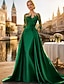 Linjeform Gulvlengde Gjestekjole til bryllup Formell kjole Aftenkjole Kjole til brudens mor Ermeløs V-hals Elegant Jul Formell Sateng med Broderi Appliqué