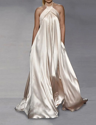 Dame Lang kjole Maxikjole Festkjole Sateng kjole Slipkjole Halter Neck kjole Elegant Moderne Fest Spesiell Leilighet Aftenselskap Normal عادي Ermeløs Grimehals Svart Gul Aprikos Vår Høst