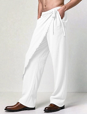 Herre Linbukser Bukser Sommerbukser Knapper Lomme foran Plisseringer عادي Komfort Pustende Full lengde Avslappet Daglig Gateklær Etnisk stil Retro / vintage Løstsittende Svart Hvit