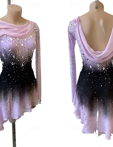 Kjole til kunstløp Dame Jente Skøyteløp Kjoler Drakter Lys Lilla Mørk Lilla Svart og Lilla Åben Ryg Netting Spandex Høy Elastisitet Konkurranse Skøyteklær Håndlaget Krystall / Rhinstein Langermet