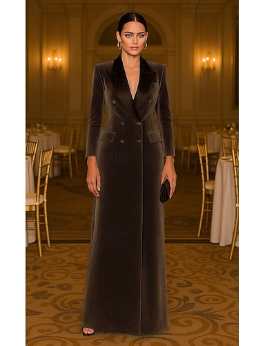 Smokingkjole Skjede Formell Bryllupsgjest Sateng Fløyel Elegant Langermet Gulvlengde Peak Lapel Dobbeltkneppet