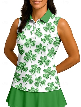 St. Patrick Dame Clover Topper Sportsskjorte POLO T-skjorte Tanktopp Ermeløs Blomster Knapper UPF50+ UV-bestandig Høy Elastisitet Fukttransport Pustende Volleyball Tennis Golf Krage Aftæpning Skjorte