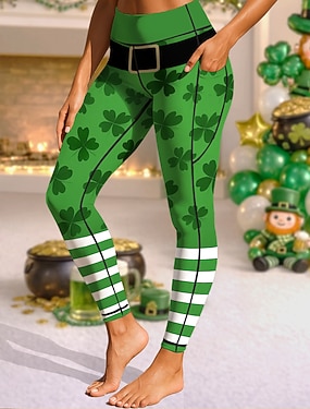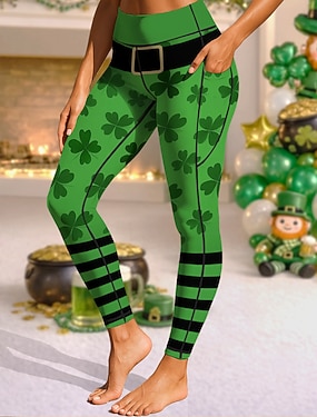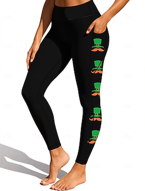 Dame Leggings Koselige leggings Ferie Fritid Full lengde Høy MidjePantsSt. Patrick Day Grafisk Clover Printer Bekvem Høy Elastisitet Avslappet Daglig Feriereise Frostet Grønn Svart Mørkegrønn Grønn