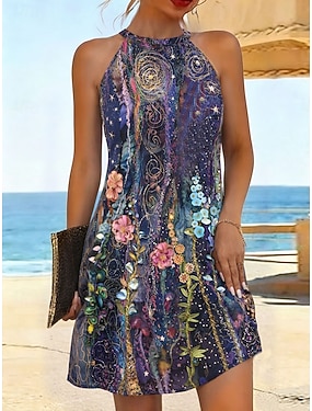 Kvinne Mini Kjole Petite Kjole T Skjorte Kjole Tee Kjole Skift Kjole Tank Kjole Bohemia Stilige Sexy Ferie Casual Strand Vanlig Passform Blomster Ermeløs U Utringning Fargerik Lys Lilla Lilla