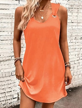 Dame Maxikjole 100% قطن Skiftkjole Solkjole Uformell kjole Grunnleggende Fritid Moden Daglig utendørs Feriereise Løstsittende Ren farge Ermeløs Båthals Lilla Brun Mørkeblå Sommer Vår
