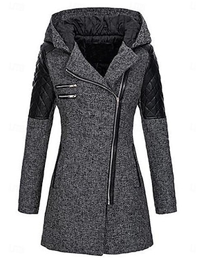 Dame Kappe / Kapper utendørs Gate Dagligdagstøy Høst Vinter Normal Frakk Normal Hold Varm Pustende Stilfull Fritid Jakker Langermet عادي size~~POS=HEADCOMP Fuksia Brun Kakifarget