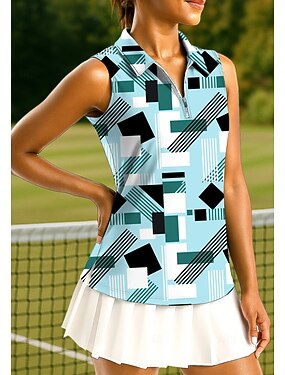 Dame Geometrisk Topper Sportsskjorte POLO T-skjorte Tennisskjorte Ermeløs Glidelås UPF50+ UV-bestandig Høy Elastisitet Fukttransport Pustende Tennis Pickleball Løp Aftæpning Glidelåskrage Skjorte