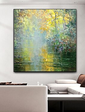oljemaleri håndlaget håndmalt veggkunst grønt landskap abstrakte bilder hjemmedekorasjon dekor strukket ramme klar til å henge