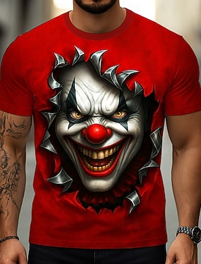Herre 3D Print Skummel klovn 3D Klovn T skjorte Kortermet T skjorte 3D-utskrift Crew-hals Skjorte overdrevet Designer Skummelt Fest Gate Avslappet Hvit Blå Grønn Sommer Vår Alle årstider Klær S M L