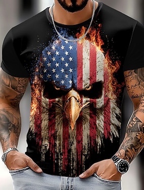 4. juli 2026 250. minnedag Herreskjorte med patriotisk vintage designer patriot grafikk 3D-trykk av nasjonalflagget veteran rund hals kortermet