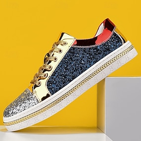 herresneakers med glitter og patchwork, snøring, moteriktige fritidssko, glitrende, lave sko til streetwear, fester, sceneopptredener, klubbantrekk, daglige moteantrekk og trendy statement-stil